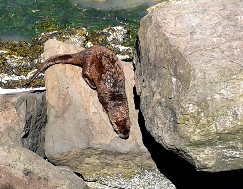 otter at Boulevard Park Published April 9, 2014 at 820 × 640 in “Kinship with All Life” In Bellingham, WA, an otter swam up to the rocks right below me and played around in the boulders for 15 or 20 minutes…. ?????????????