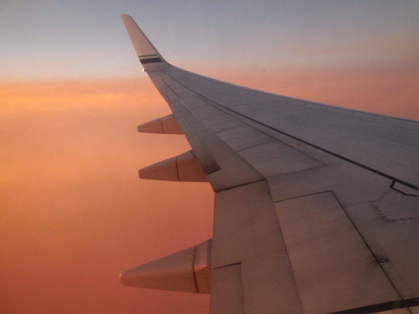 Sunset from a Plane Published September 22, 2014 at 4608 × 3456 in The Madcap Christian Scientist’s Excellent Adventure Plane’s wing in sunset – photo by Karen Molenaar Terrell