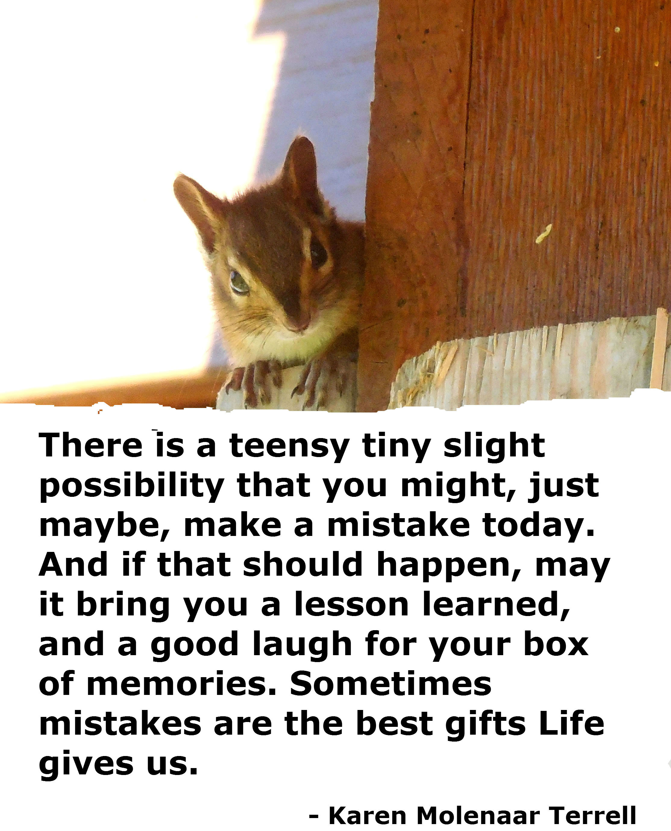 In the meantime, David had graciously replied to my email message, and I was relieved to discover that 1) he is a good sport and 2) he has a well-developed sense of humor. He wrote, in part, “That photo of mine is in every copy of Windows 7. So anyone running that would figure out pretty quickly where it came from. 750 million people have a copy of that one already…” SEVEN HUNDRED AND FIFTY MILLION PEOPLE!!! That sort of puts things in perspective, doesn’t it? Yup. When I mess up, it is on a grand scale. No small little insignificant mess-ups for me. Nosiree, bub. I mess-up BIG.