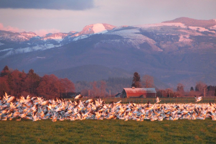 snow geese and red barn this one too definitely Published March 25, 2018 at 5184 × 3456 in Jeweled Sky and Winging Things Snow geese in Skagit County, Washington. Photo by Karen Molenaar Terrell.
