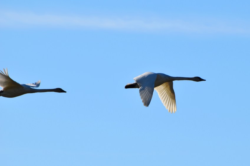 swans flying 2 Published November 20, 2019 at 5052 × 3370 in “1918?!” Trumpeter Swans over Skagit Valley