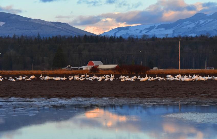 mount baker red barn trumpeter swans this one Published January 11, 2020 at 5886 × 3771 in 2020 Calendar January: Swans in front of Mount Baker
