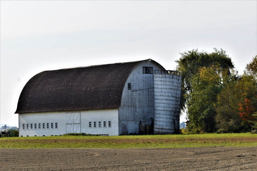 I got dressed and got in the car. I’ve been listening to the same CD for the last six months, and thought maybe it was time to change it out – but I realized I’d brought my other CDs to Scott’s car when we went on our trip to Rainier. So I settled in to listen to my old faithful CD, and pretty soon I was on the road to Fir Island. And pretty soon I saw a pair of eagles sitting in a tree. And pretty soon I saw some way cool old barns. And pretty soon I heard snow geese honking in the air above me – and saw flocks of them winging through the sky in perfect formation. Such joy to see them again!