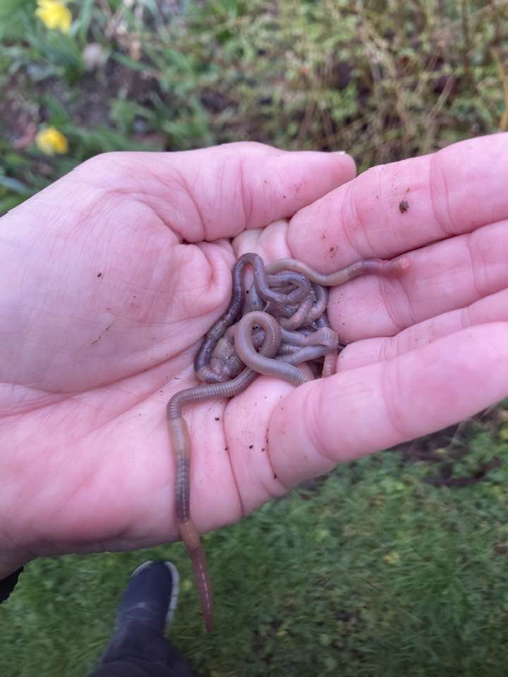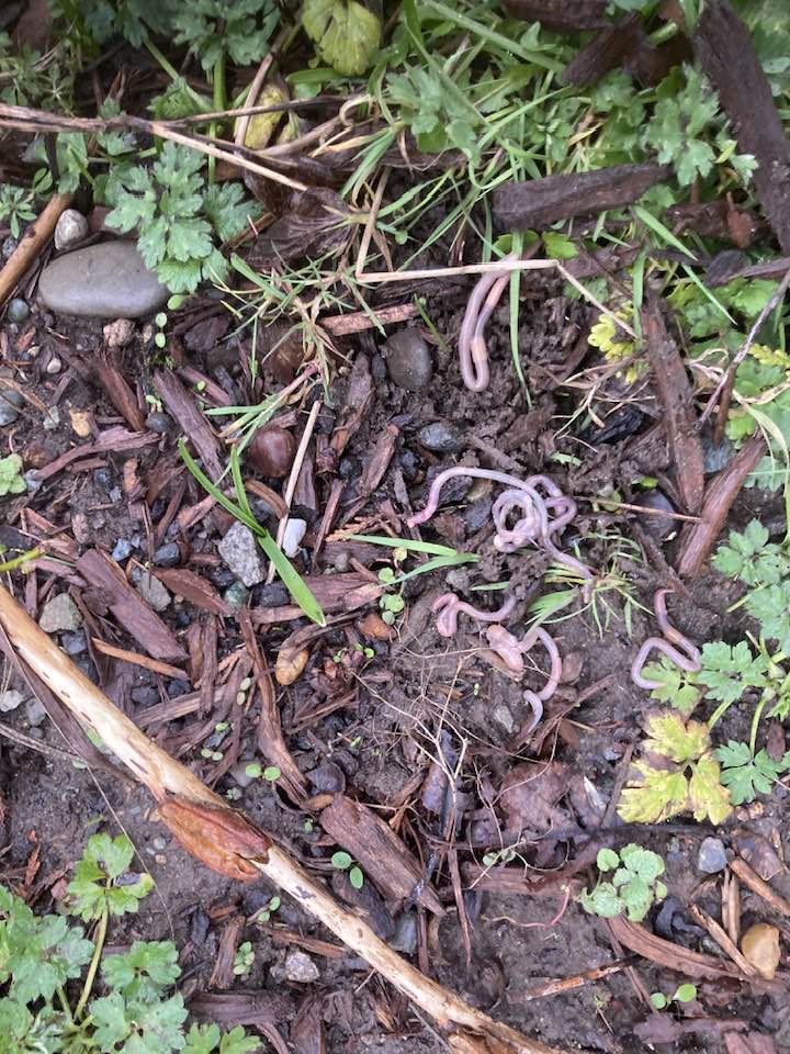 So when Scott got home and asked me what I’d been doing today, I told him, “Saving worms.” Maybe thinking he didn’t hear me right, he asked, “Saving what?” and I repeated, “Saving worms.” Which got transcribed into “bathing worms” by the ever-present AI that lives in our lives.