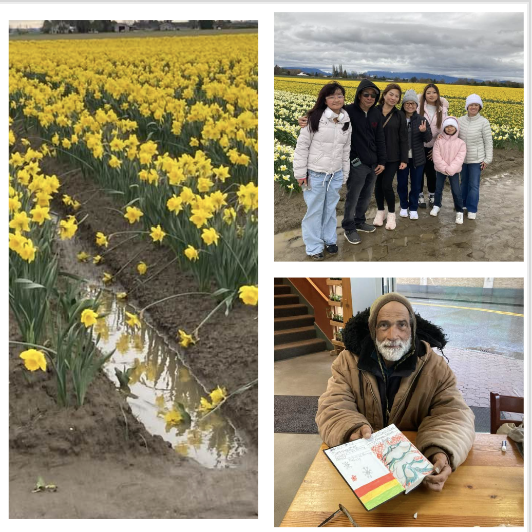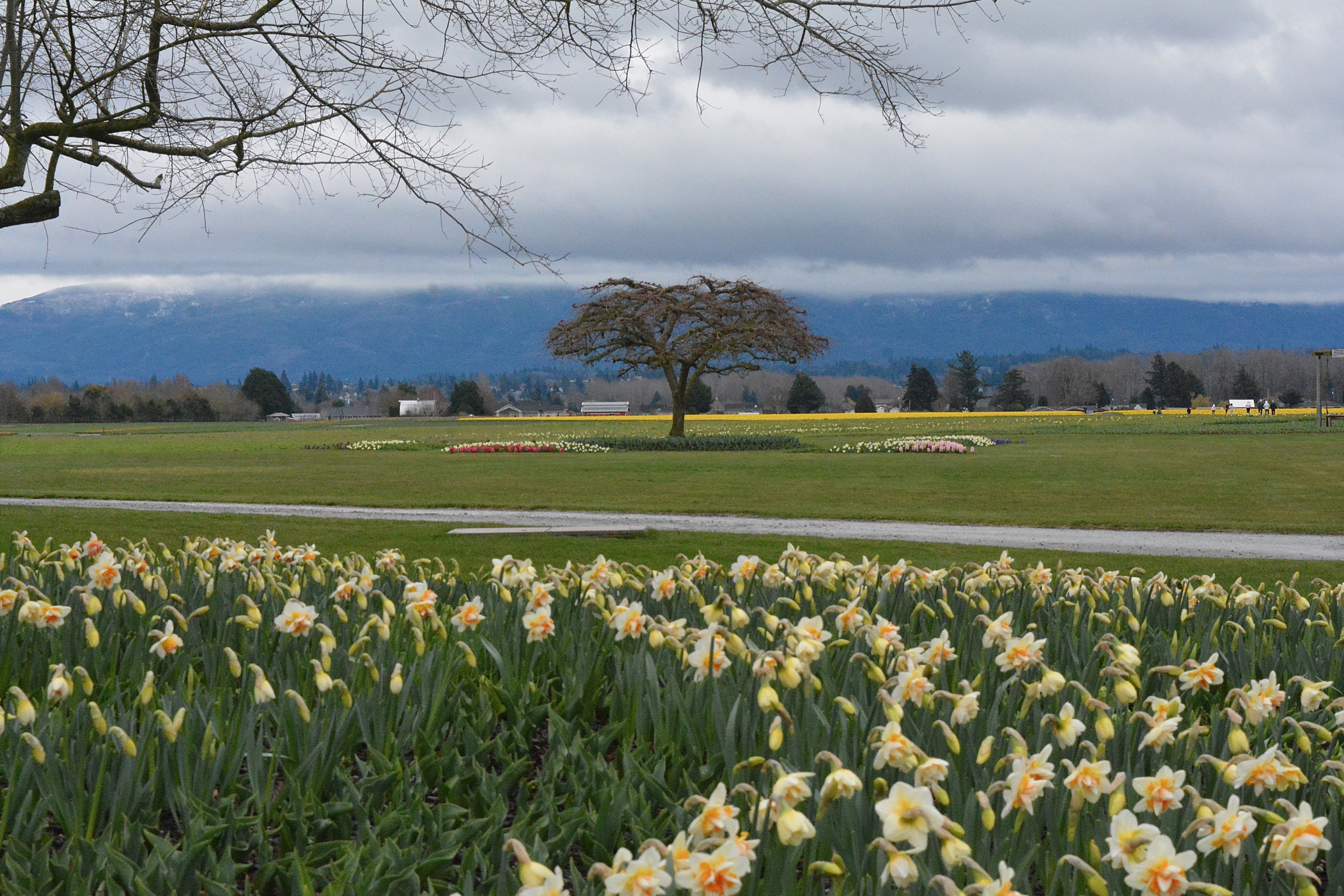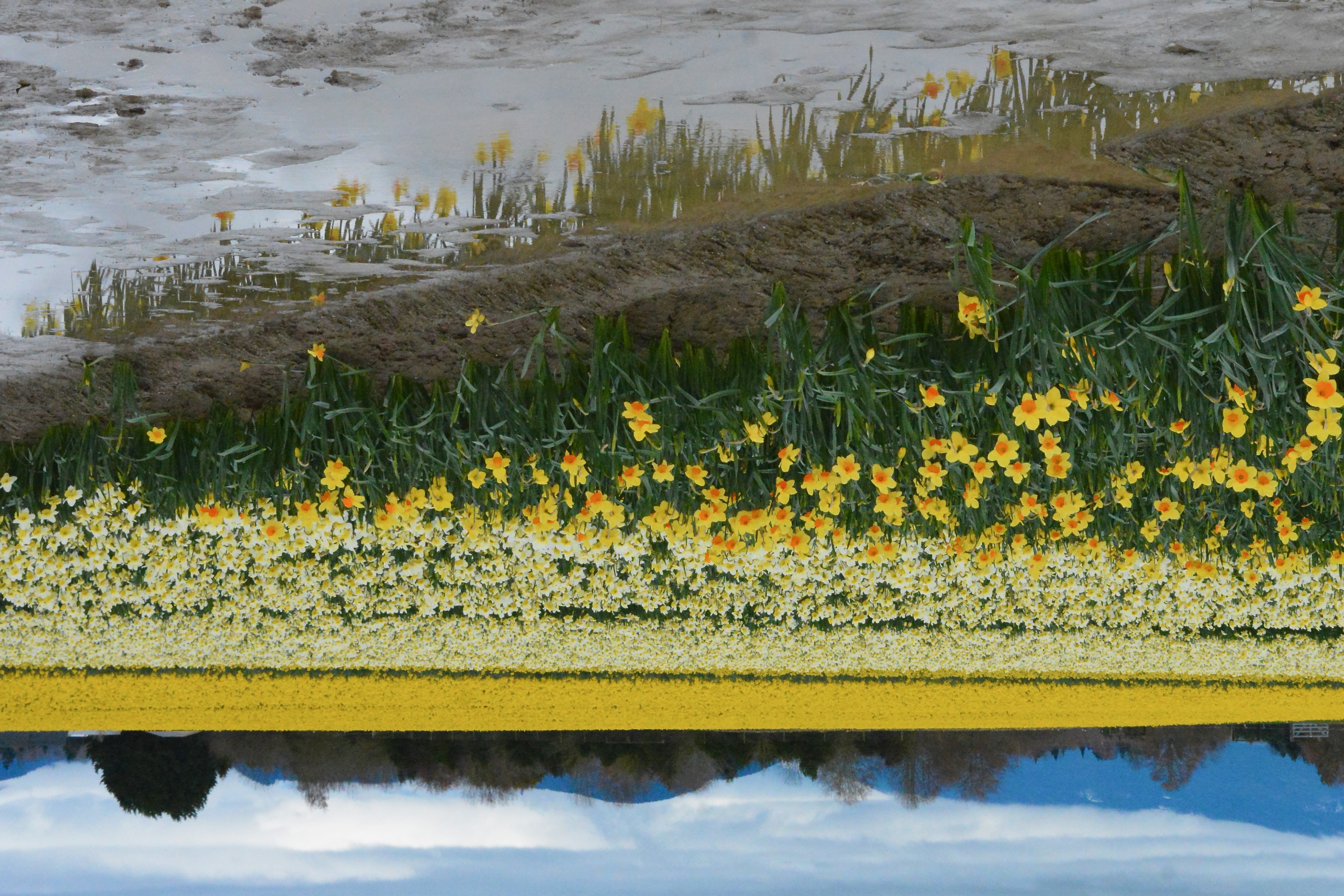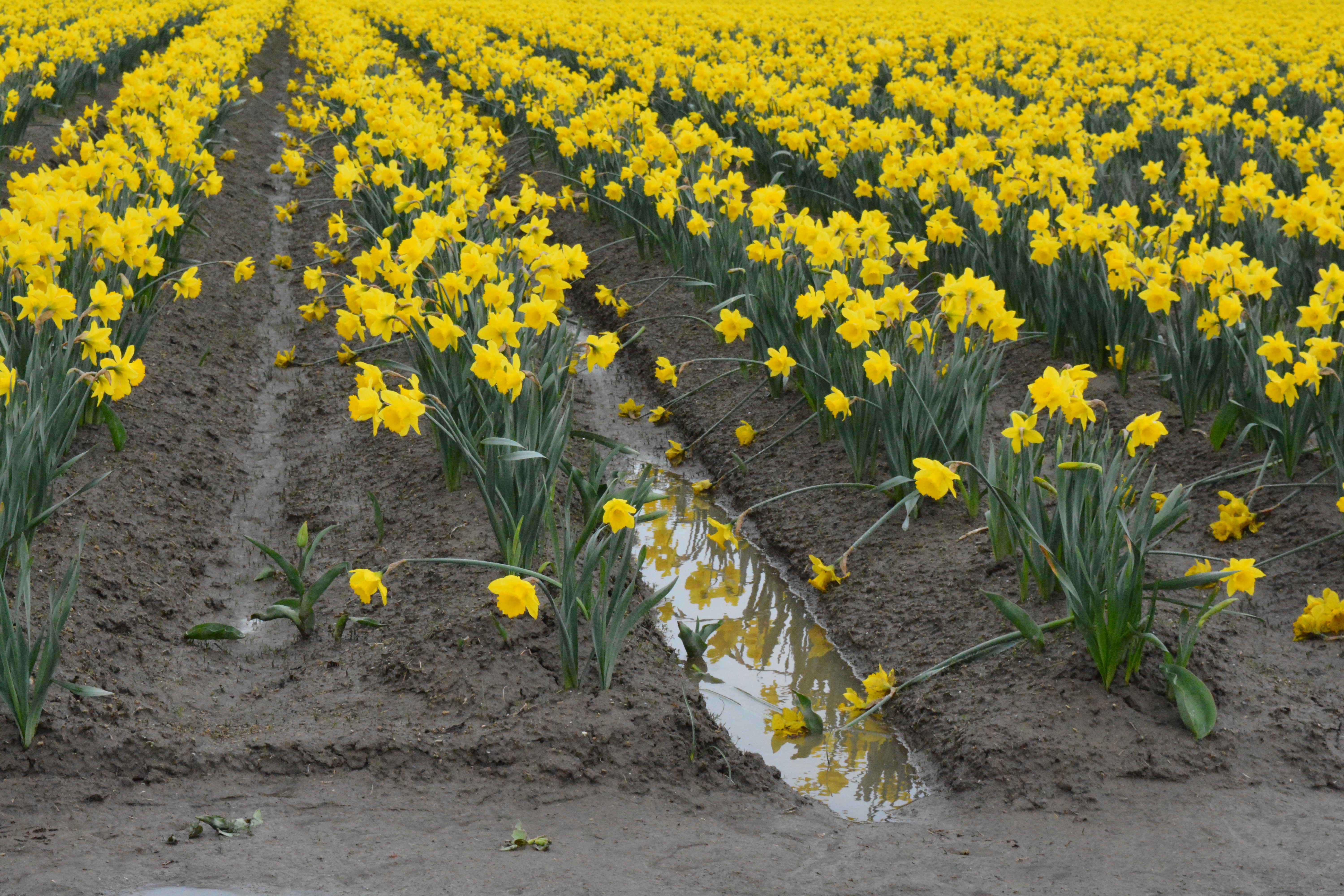 Since I was already out of the house, I decided to mosey over to west Mount Vernon to check out the local daffodil fields. I ended up at RoozenGaarde gardens, and was not disappointed by the beauty I found there – hyacinths and forsythia and puddles of golden daffodil reflections. To get to the daffodil fields, I needed to walk about a quarter mile through mud and muck and puddles, but it was totally worth it! And it was fun to meet other daffodil-lovers on the other side of the mud and muck and puddles.