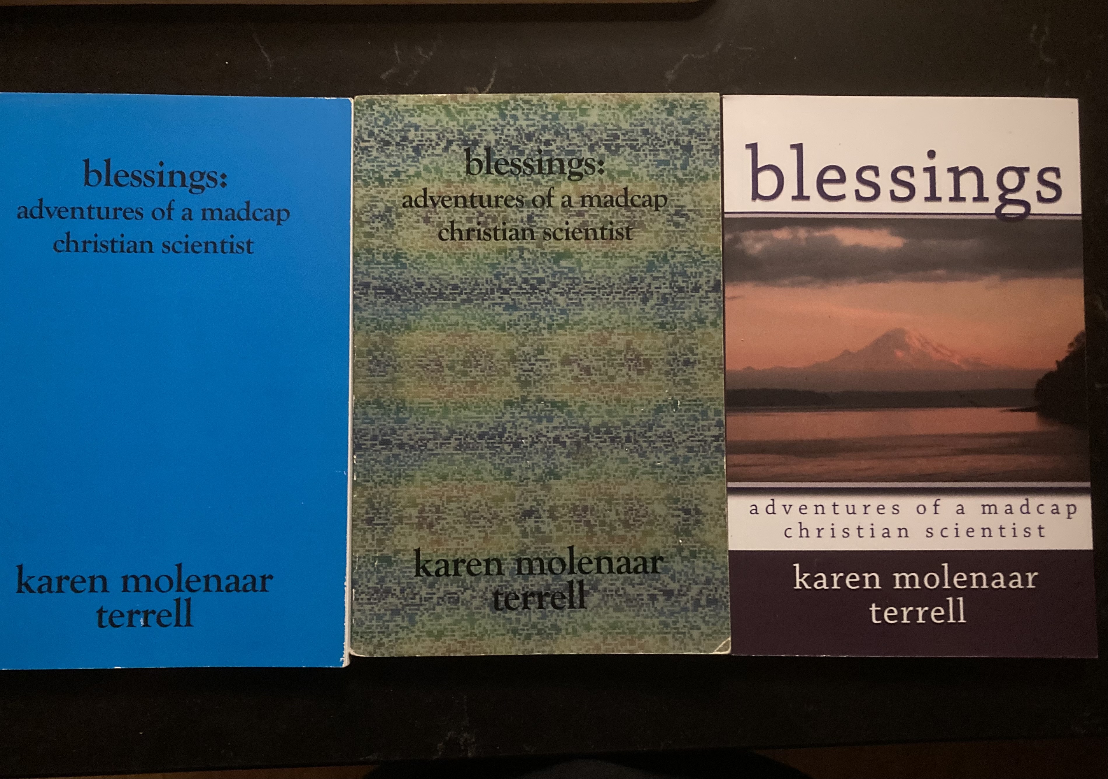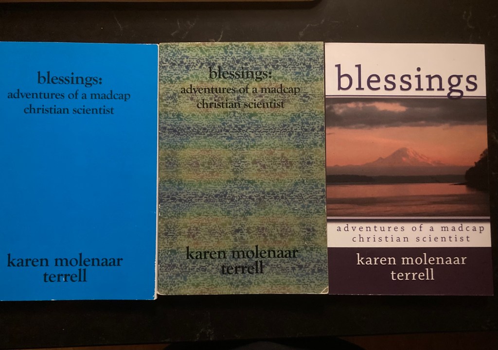 Exactly 20 years ago today I published my first book on Amazon, Blessings: Adventures of a Madcap Christian Scientist. This first book still has a special place in my heart. So many loved ones supported and encouraged me as I put Blessings together: I think it was my friend, Marjorie, who first told me about print-on-demand publishing companies and encouraged me to look into getting my book in print; Mel, the wife of the man who had saved my dad and his teammates on K2 in 1953, was instrumental in keeping me going – every time I’d hit a glitch she would call me out of the blue – like magic! – to tell me how much she was looking forward to seeing my book in print; and other friends took the time to read my manuscript and give me helpful feedback. I completed the manuscript in time to give typed copies to my mom, and my aunts Junie and Elsie for Mother’s day in 2005. And on August 9, 2005, I published it with CreateSpace – an Amazon publishing company.