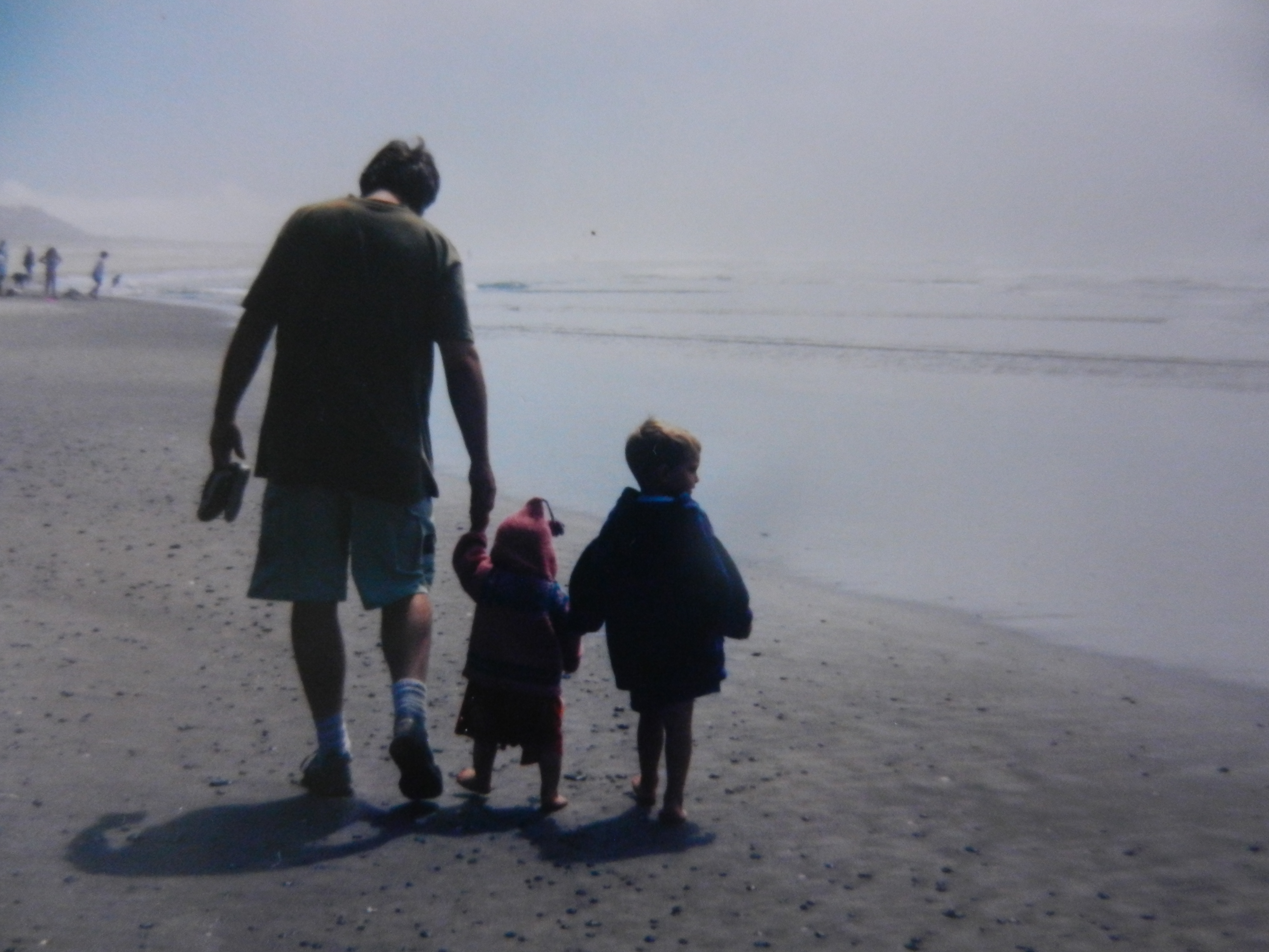 Photo of husband and sons. Lincoln City, OR. Circa 1995.