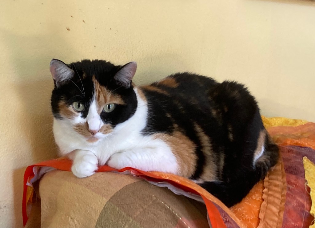 I decided to read the weekly CS Bible lesson-sermon. This week’s was on “Love” – my favorite topic! And I got all wrapped up in reading and thinking about the God who is Love and Her love for us. And when i finally finished and looked up, I saw Clara lying on the top of the chair – all stretched out and casual – looking at me.