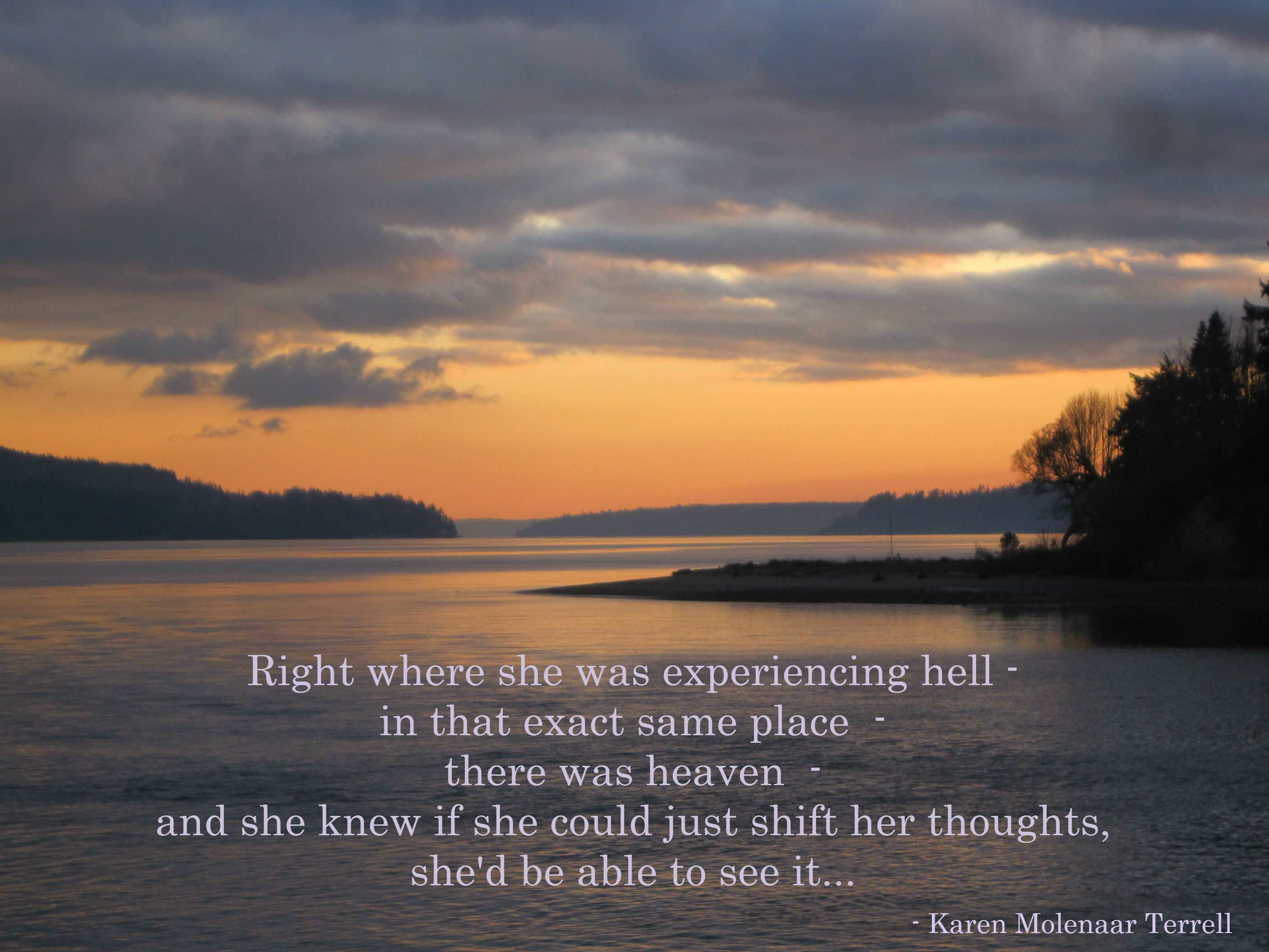 photo of a sunset over the Puget Sound by Karen Molenaar Terrell