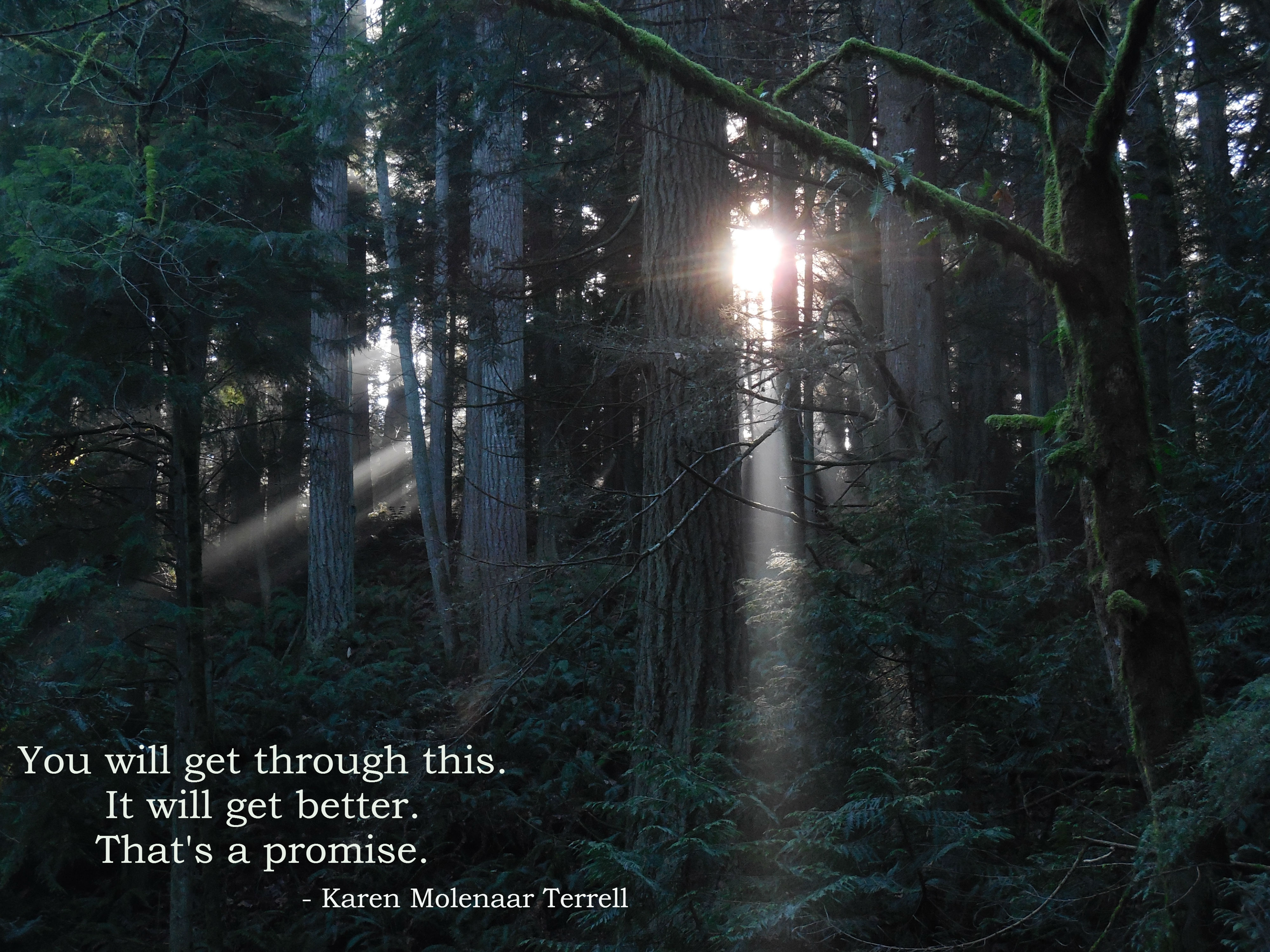 Before too long Kathi and I were email buddies – emailing each other regularly twice a day. Kathi had been through some pretty major challenges in her life, and could relate to a lot of what I was going through. She understood my thoughts about not wanting to use medication to get relief from the depression – understood that I felt there was something I needed to learn from my experience. She understood, too, when I told her that I’d found I could be happy even when I was depressed. Kathi wrote: